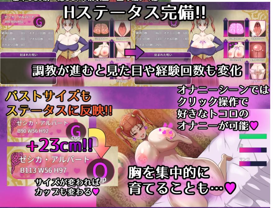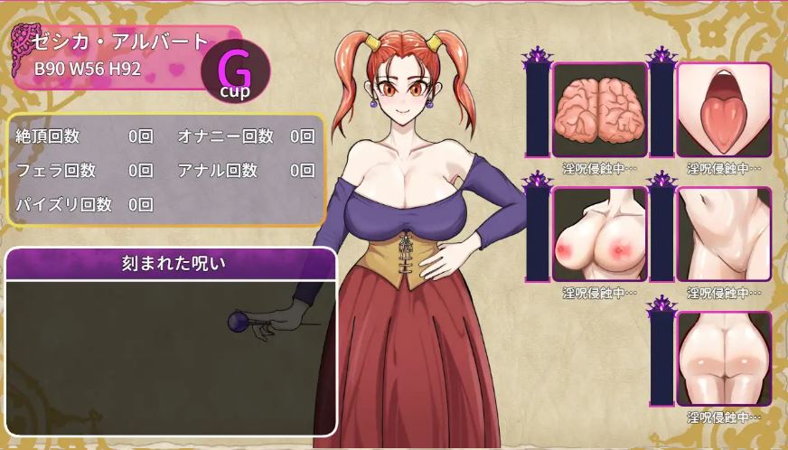 根据防具和游戏进度,外观会发生变化。还能查看诅咒进展程度和自慰次数等。
