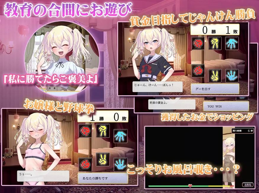 夜晚则悄悄捣蛋,满足特定条件后甚至可以偷窥自慰,向无知的大小姐传授各种色情之事。