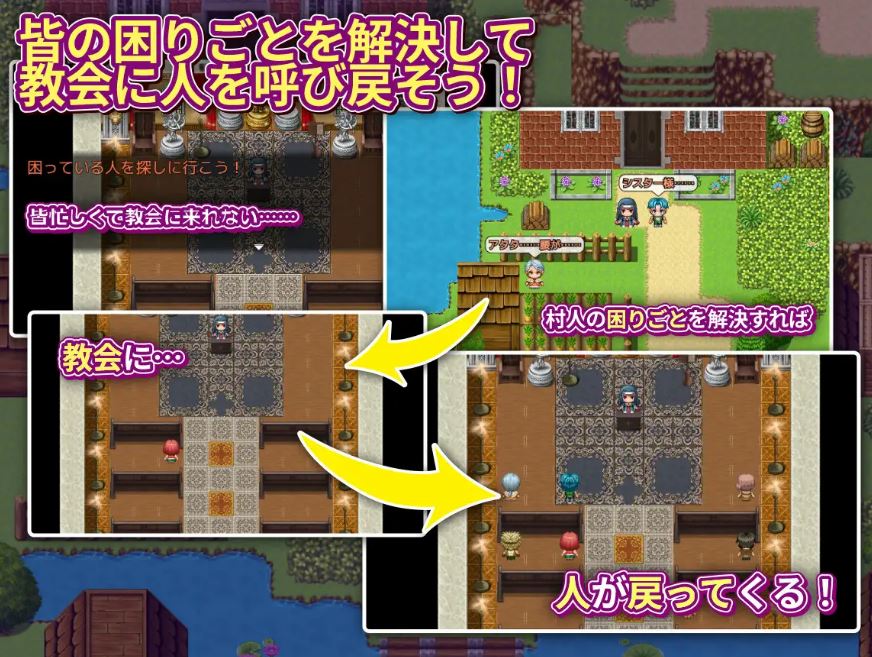 某天,玛丽亚发现村民们总是忙于生计无暇来教堂。为了让人们重回教堂,她开始主动帮助村民解决困难!