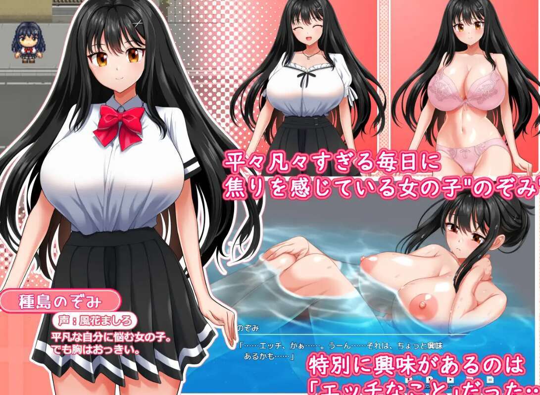 是一款以平凡却对色色事物感兴趣的女孩“种岛望美”为主角,探索日常生活中充满的色色元素的“设定极性日常探索型色情 RPG”。